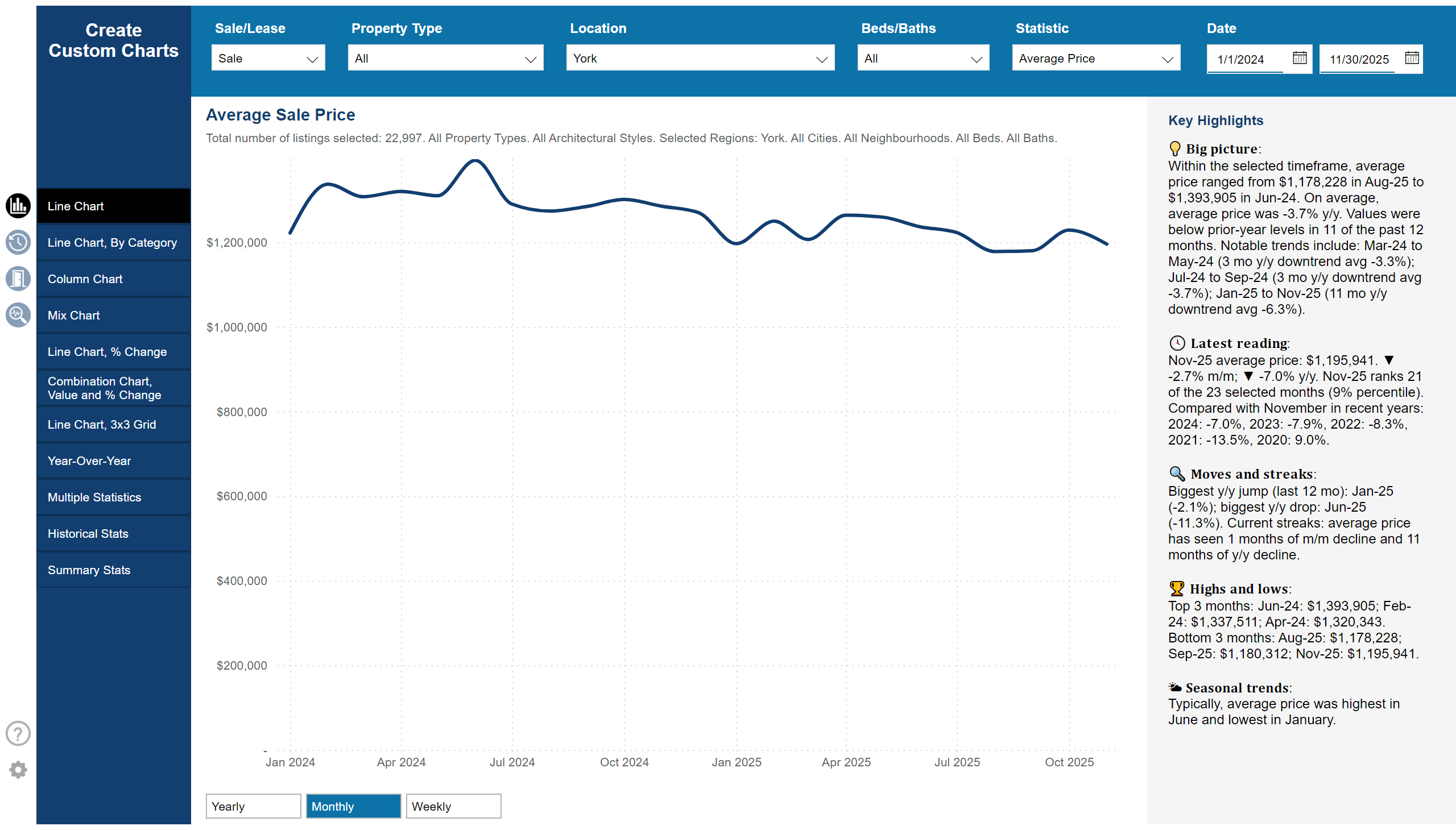 2022–2025:持续修正 平均价逐年下调。2025年11月均价约 $1.19M,比峰值低近 25%–30%,处于过去十年中位水平。