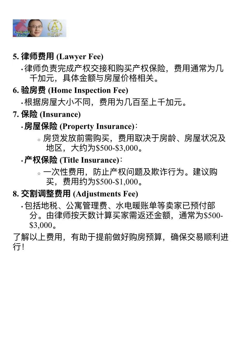 o 买家经纪佣金通常由卖家支付,多为成交价的 2.5%。